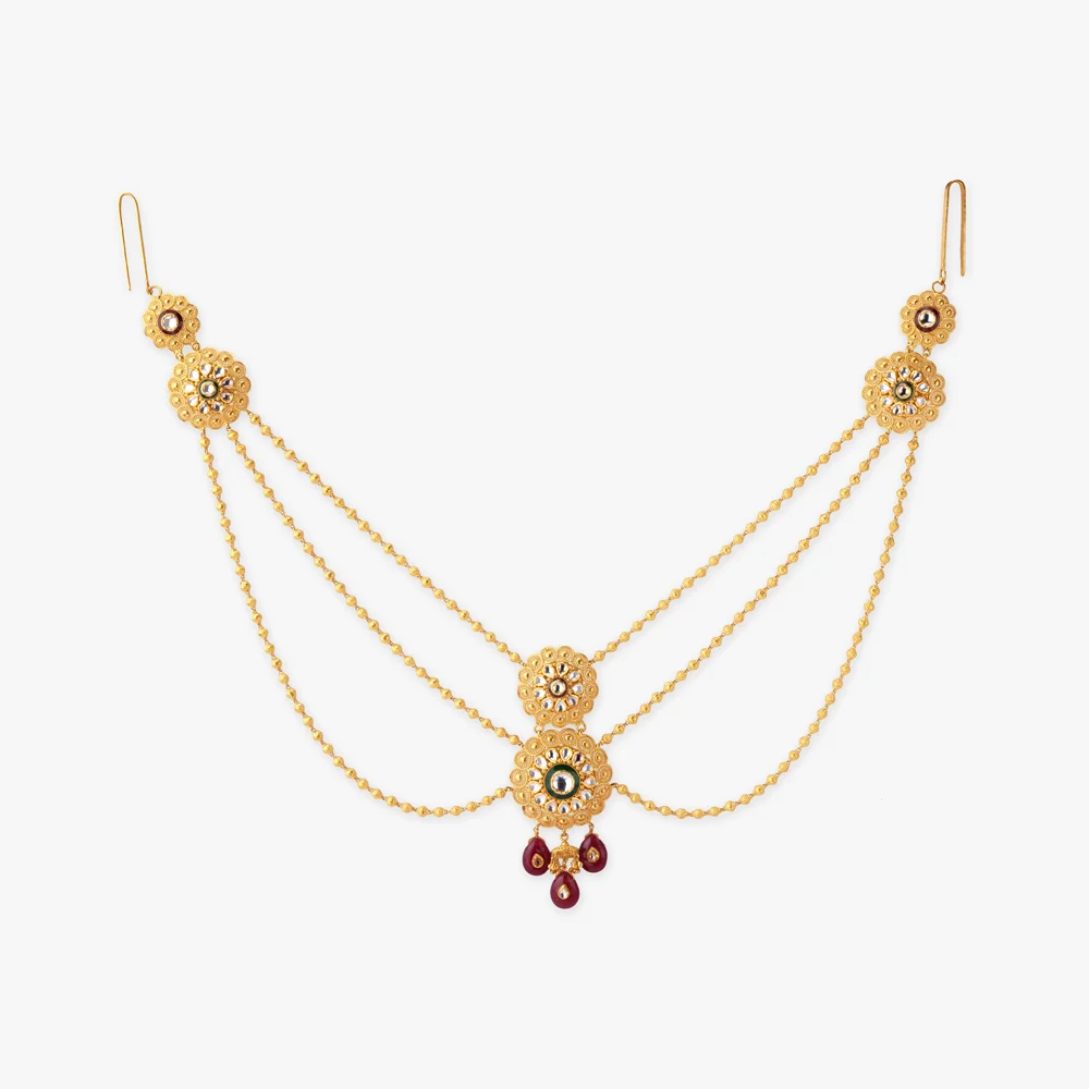 Triple-Layered Elegance: The design features three tiers of fine, gold-beaded chains that drape elegantly, creating a sense of movement and layered sophistication.