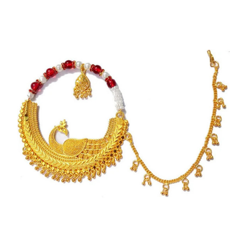 Peacock Garhwali Bridal Nath – Red Beaded Heavy Nath