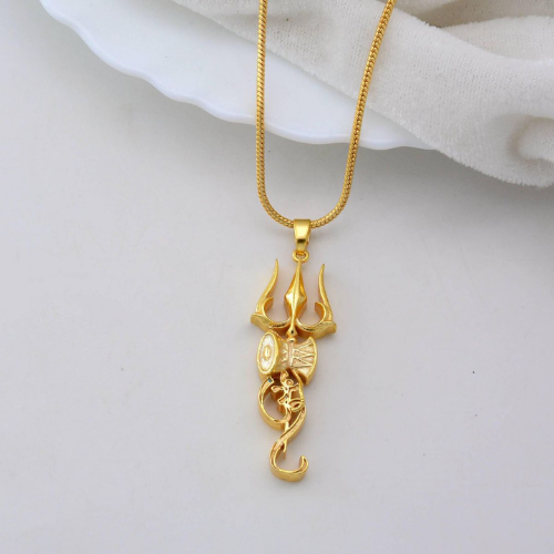 Trishul Damru Gold Pendant – Lord Shiva Divine Symbol Necklace