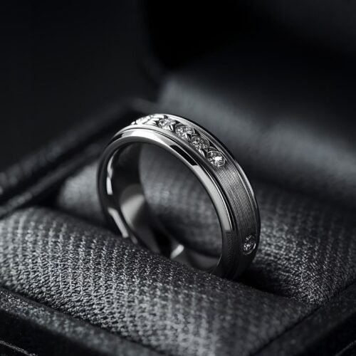 Men’s Silver Band Ring – Modern Brushed Finish with Stone Accents